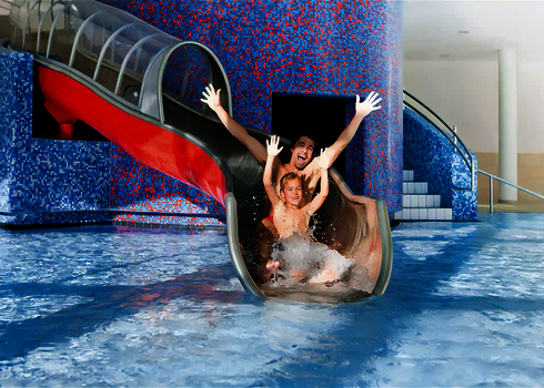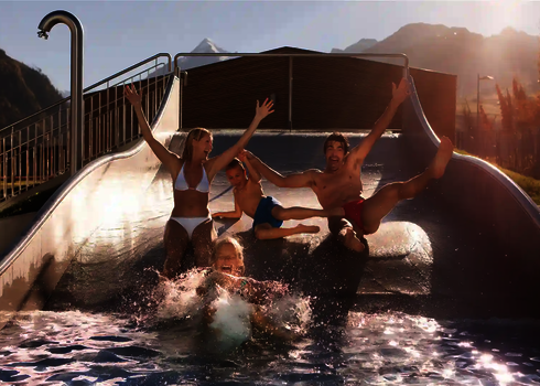 Im Tauern Spa Kaprun in Österreich trifft Entspannung auf Rutschenspaß. Das moderne Hallenbad bietet mit einer Breitwellenrutsche und der RR900 zwei attraktive Edelstahlrutschen. Die Anlage ist ideal für Gäste, die Wellness und Aktivität kombinieren möchten – wetterunabhängig im stilvollen Innenbereich.