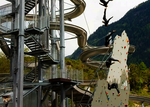 Die Area 47 in Tirol ist bekannt als größter Outdoor-Freizeitpark Österreichs. Im Zentrum der Wasserattraktionen steht der 27,5 Meter hohe Multi-Action-Tower, der 2010 errichtet wurde. Hier starten vier verschiedene Rutschen: Cannonball, Breitwellenrutsche, Freifall und WR1040.