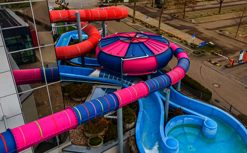 Besonderes Augenmerk liegt auf dem innovativen Body Bowl, der das Herzstück der neuen Anlage bildet. In diesem Bereich erleben die Gäste ein einzigartiges, galaktisches Farbenspiel – der erste Wie-Glow Schwarzlicht Bowl der Welt geht hier in Betrieb. Durch die Kombination aus Geschwindigkeit, Kurvenführung und Lichteffekten wird jeder Durchgang zu einem visuellen und sensorischen Erlebnis, das die Attraktion von herkömmlichen Rutschen klar abhebt.